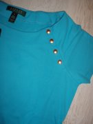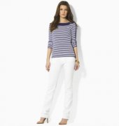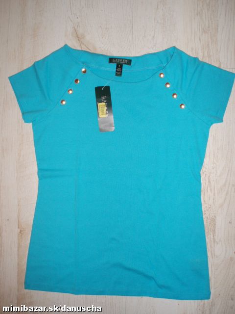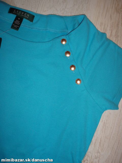 tričko RALPH LAUREN z dámskej kolekcie LAUREN v námorníckom štýle s lodičkovým výstrihom a zlatými gombíkami s logom.
