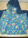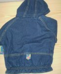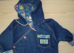 Bunda na prechodné obdobie, so zaujímavým zapínaním. Farebná podšívka. Rukávy sa dajú zahnuť, čím je využitá veľmi dlho. Rozmery: šírka 41 cm, dĺžka 44 cm, dĺžka rukáva 32 cm, odohnutý 39 cm.