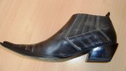 Dámske celokožené kozačkové topánky, zaujímavá farba, čierno - sivá, nízky opätok. Sú na našuchovanie. Vo veľmi dobrom stave.