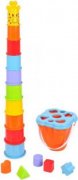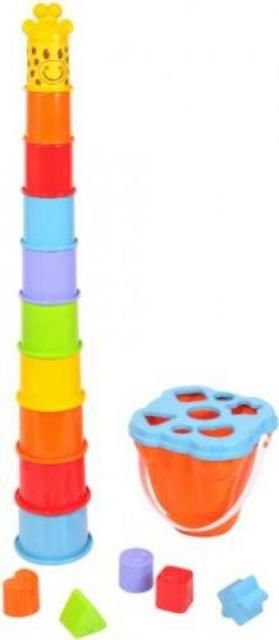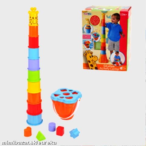 IHNEĎ K ODBERU! Tvorivá hračka je určená už pre deti od 12 mesiacov. Hrou si cvičia motoriku rúk, koordináciu pohybov, vizuálne vnímanie farieb a tvarov. Poháriky sa ukladajú jeden na druhý až dieťa postaví vysokú žirafu. Ak sa ukladajú od väčšieho po najmenší, tak zapadnú do seba. Spodná časť žirafy (telo) poslúži aj ako úložný priestor - po otočení je to plastové vedierko s poklopom, ktorý má vkladacie miesta rôznych tvarov. Súčasťou balenia sú aj vkladacie dieliky.