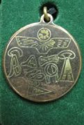 materiálom je kombinácia kovov vo forme špeciálnej zliatiny.Priemer 3cm,súčasťou balenia je aj kožená šnúrka.