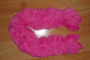 Úžasný neprehliadnuteľný šálik vo výraznej cyklamenovej farbe- mäkkučký, pružný (v strede má gumičku) Dĺžka cca 100-150 cm. Upevňuje sa prevlečením cez otvor na konci. Nenosený, originál zabalený .