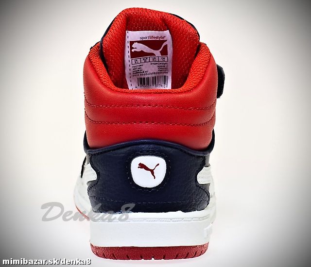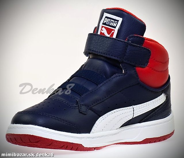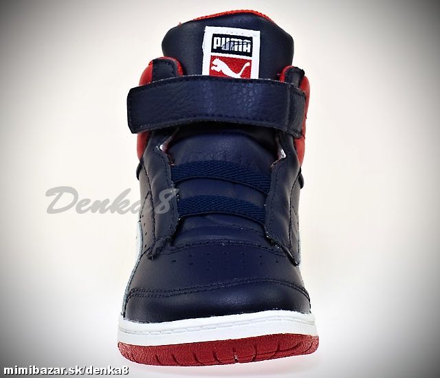 Vysoký strih. Vpredu pružné gumky pre uľahčenie obúvania a navrchu zapínanie na suchý zips. Logo na "jazyku", na podrážke naboku a vzadu.