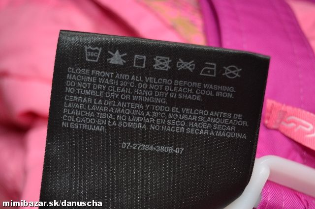 nosili sme len tak na prechádzky aj na lyže a sánky, veľa som to prala, výborne rýchle schne (nesušiť v sušičke aby sa zachovali vlastnosti materiálov), preto sa nožičky pavúka na chrbte začali odliepať, šikulka to tam nejako prilepí keď bude veľmi chcieť, možno stačí prežehliť, ja som neskúšala, bolo mi to jedno...