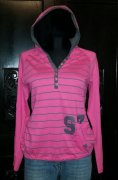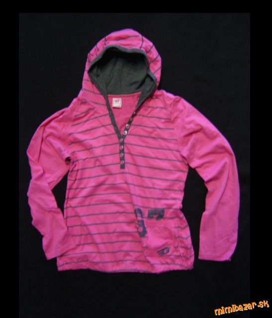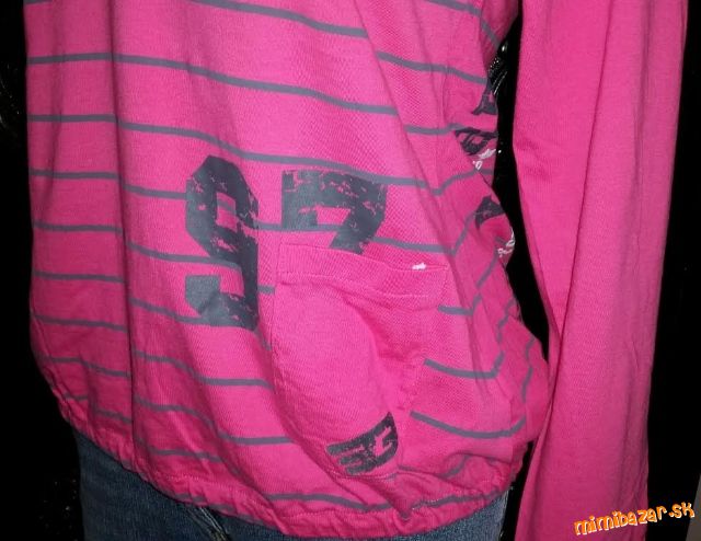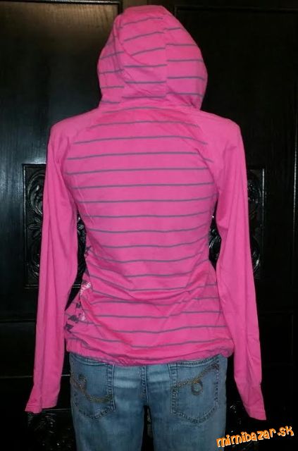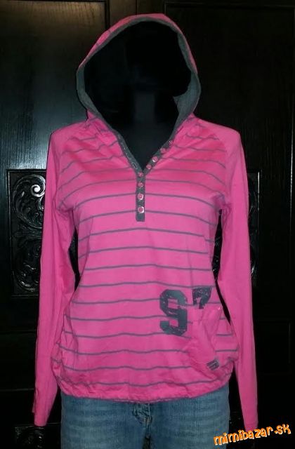 Úžasná dámska športová mikina s kapucňou. Veľmi pohodlný strih v pase mierne zúžená, dole ukončená do gumičky, vpredu malé vrecko. Oblečenú som ju mala cca 2x, veľmi dobrý nosený stav. Mikiny moc nenosím, tak posúvam. Farba: sýto ružová+šedá