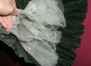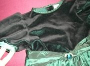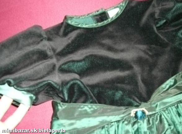 rozmery: dl. od výstroja dole 59 cm, dl. od pazuchy dole 44 cm, šírka od paz. po pazuchu 31x2, suknička naskladaná, vršok zamatový, pas sa da zúžiť mašlou