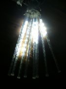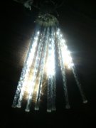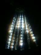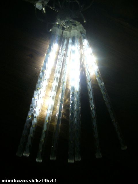 Nádherné dekoračné led osvetlenie v tvare cencúľov v imitácii tečúcej vody z hora smerom dole tiež nazývané aj meteor rain alebo snow fall je dlhé 2,5 metra myslené svietiaca časť + 1,5m prívodný kábel,má 8 ledkových cencúľov ktoré sú 50cm dlhé,dajú nadpájať jeden za druhým všetko potrebné je už v každom balení preto nič netreba dokupovať.