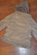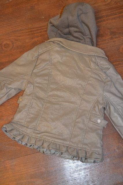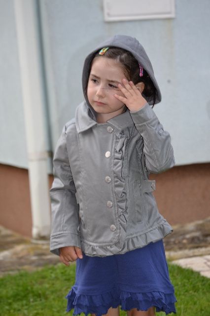 táto je sivá, skvelé detaily, volániky, pletená kapucňa sa dá odopnúť. rukáv je ukončený tak, že sa dá ohrnúť alebo nosiť v plnej dĺžke a prispôsobiť tak dĺžku...