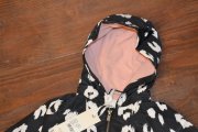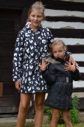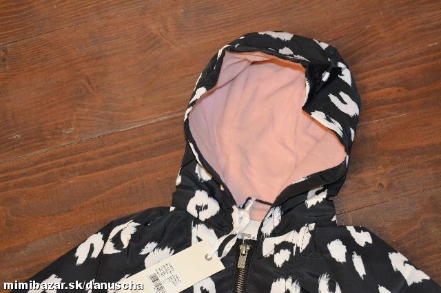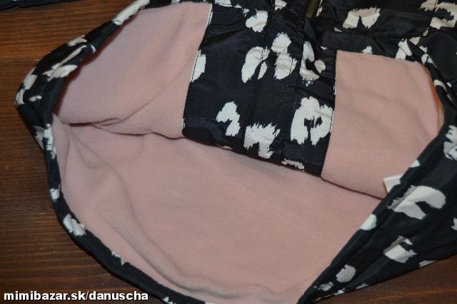 sivo-čierna farba, biely zvierací motív, predĺžená, v páse sťahovanie, kapucňa, raglánové rukávy, zapínanie na zips, kopa vreciek, jemné vatovanie, podšitá flisom, proti dažďu a vetru...