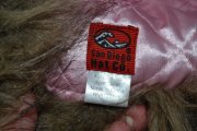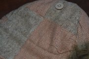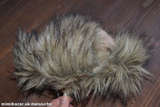 zvrchu vlnená, patchwork prírodnej hnedej a hnedo-ružovej látky. umelá kožušina je hnedej farby.