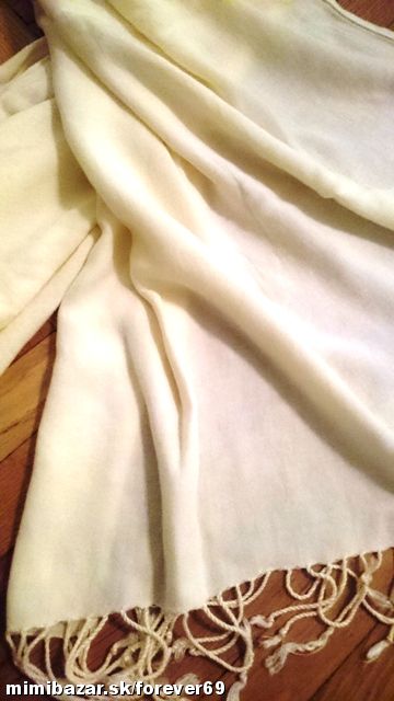 Kvalitný šál smotanovej farby, príjemný materiál- 100% viskoza, na oboch koncoch strapce. Pár krát použitý, vo veľmi dobrom stave