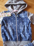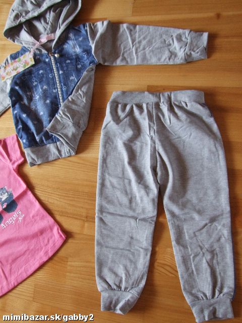 IHNEĎ K ODBERU!! Tepláková súprava s jeansovým efektom vpredu, je to 3-kombinácia (tričko, bundička a tepláky). V šedej farbe a vo veľkostiach: