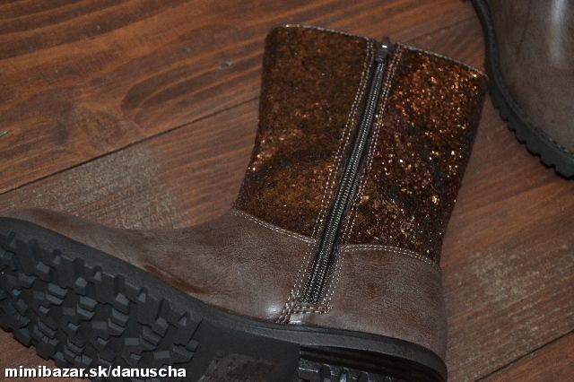 model JACKIE SPARKLE BOOTS, hnedá farba, na sáre flitre v hnedo-bronzovej farbe, zapínajú sa zipsom, umelá koža, kvalitná mäkká stielka, flexibilná gumená podrážka,...