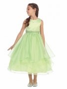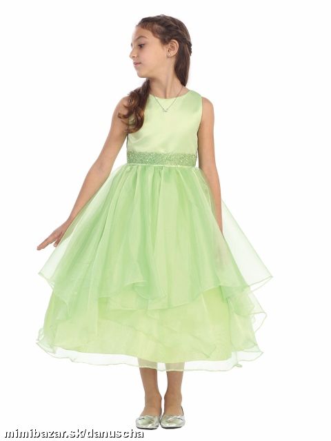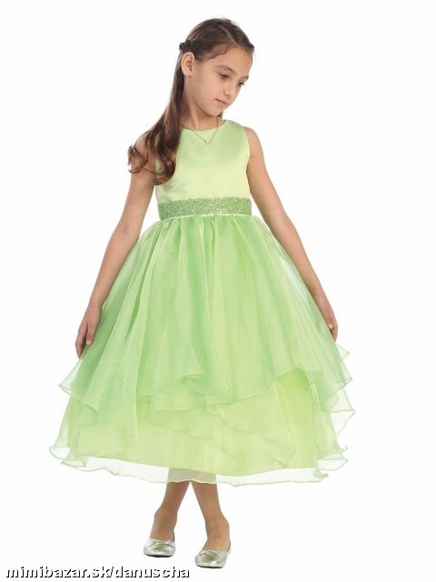 náročná večerná róba pre malú parádnicu. model Asymmetric Ruffles Satin/Organza Flower Girl Dress v zelenej farbe.