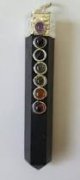 Prívesok Čakra tvorí sedem kamienkov vo farbe čakier:granát, karneol, citrín, olivín, mesačný kameň,lápis lazuli,ametyst.Polodrahokamy sú zasadené v TURMALÍNE a v striebre.Čakrový set dáva do súladu auru,ktorá citlivo reaguje na naše pocity,emócie,ako aj na pôsobenie ľudí v našej blízkosti (cca do 2m).Uško a vrchná časť je zo striebra.Prívesok harmonizuje:1. čakra koreňová-Granát:prežitie,stáť pevne nohami na zemi,sila ísť ďalej,sila žiť/2.čakra sakrálna-Karneol:pudy,zmyselnosť,tvorivosť/3.čakra solár plexus-Citrín:slnečná energia,radosť zo života,prijímanie svetla do života,protikladom je sklamanie,žiarlivosť,snaha ovládať druhých/4.čakra srdcová-Olivín:sebaláska, medziľudské,partnerské vzťahy,odovzdanie dať bez podmienok,bez očakávania/5.čakra krčná-Mesačný kameň:centrum komunikácie,vyjadrenie pocitov bez zámeru ublížiť druhému,prejaviť tvorivosť,most medzi myslením a tvorením/6.čakra tretie oko-Lapis lazuli:intuícia,duchovná sila,vnímať srdcom-nie rozumom,vnútorné vedenie/7.čakra korunná-Ametyst:jasnovidnosť,poznanie pomocou vnútorného videnia,jednota s Univerzom tela ducha a mysle.Všetky polodrahokamy sú upevnené v kameni,ktorý prečisťuje každú čakru a premieňa negatívnu energiu na pozitívnu.TURMALÍN je jeden z mála kameňov,ktoré nemusíte čistiť a ony čistia vás.Dokáže zmeniť negatívne (zlé) energie na pozitívne (dobré) a to aj vtedy,ak vám niekto takto (ne)praje-Ak trpievate úbytkom energií,zočinou,ste vyčerpaní,chorľaví,je tento prívesok práve PRE VÁS! Ide o NOVÝ TOVAR=JEDINÝ kus v predajni!Pre prírodné kamene sú charakreristické vnútorné lomy a ryhy,každý kus je originál !!!KUK aj na ostatné moje aukcie či na MMB,za jedno poštovné 0,80 obyč/1,60 doporučene