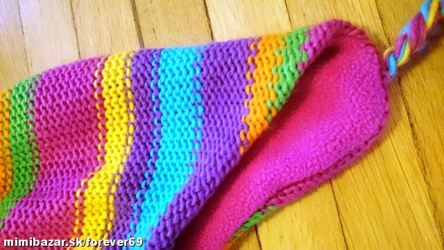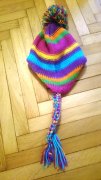 farebná štrikovaná čiapka podšitá flisom , s ušnicami so strapcami. Veľkosť neuvedená- cca od 10 rokov. čiapka je nosená, ale vo veĺmi dobrom stave