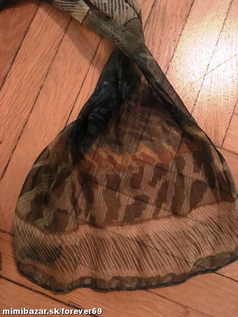kombinácia tmavozelenej s bledšie zelenou a hnedou, nosený v dobrom stave