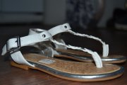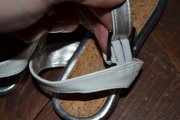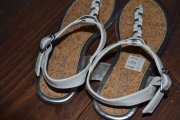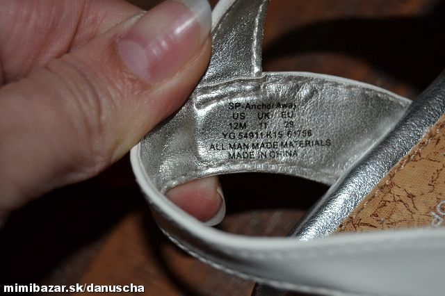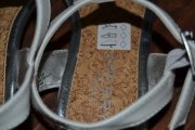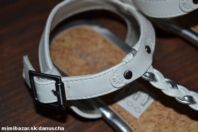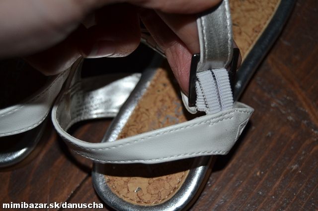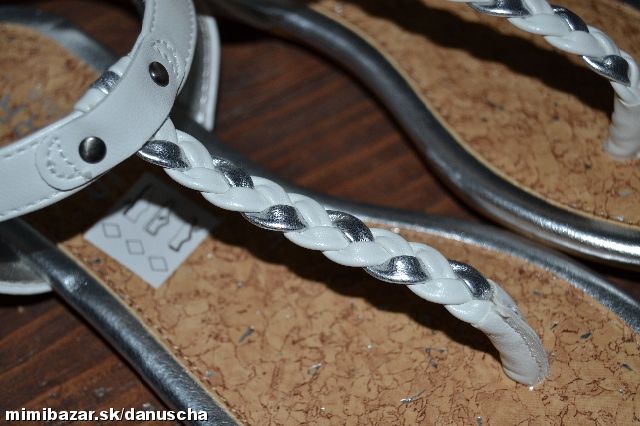 jednoduché, vpredu prepletané so striebornou, umelá koža, korková stielka, jemne polstrovaná, gumená podrážka.