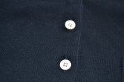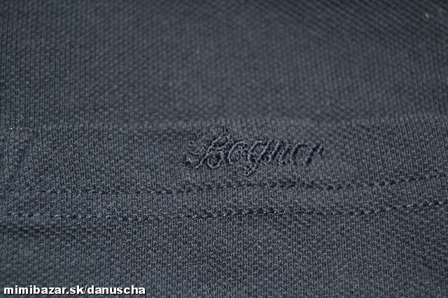 logo vyšité na vrecku, na každom gombíku. farba je tmavpmodrá až čierna.
