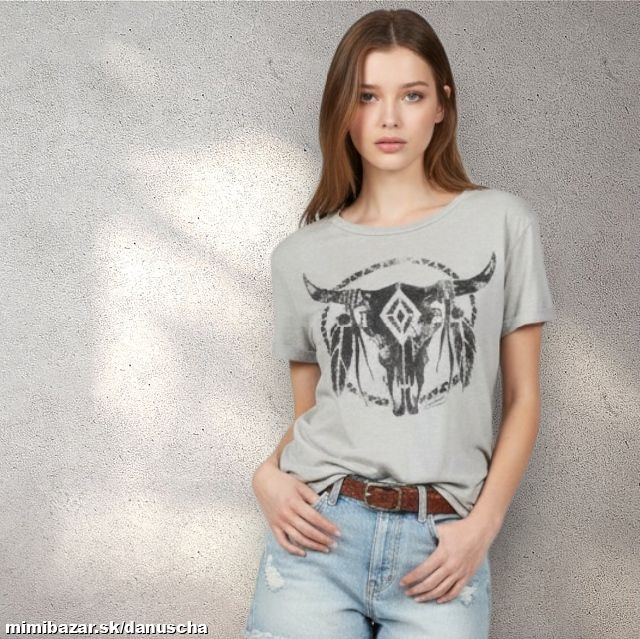sivá farba, vpredu veliká aplikácia s indiánskym motívom, okrúhly výstrih, úžasný materiál, špeciálna úprava, veľmi príjemná na dotyk a nosenie