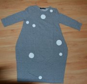 Extravagantné, originálne, jednoduché a veľmi pohodlné šaty s potlačou krúžkov. Sú z elastickej teplákoviny. Šaty sa smerom dolu rozširujú, zaoblujú a mierne zužujú. Majú 3/4 rukáv a bočné vrecká. Ja som si ich dala ušiť v dĺžke 105 cm, čo je po kolená. Vhodné aj pre tehotné, schovajú všetky nedostatky. Mala som ich oblečené 1x, takže sú v podstate nové. Objednané na stránke sashe. Pôvodná cena: 80 €