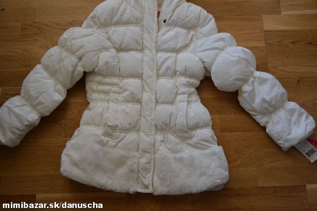 nová s visačkami, biela vetrovka kombinovaná s umelou kožušinou dole, na kapucni, viď foto. v rukávoch manžety, vo vnútri flis. vatovaná. nádhera!!!