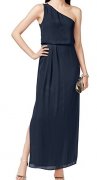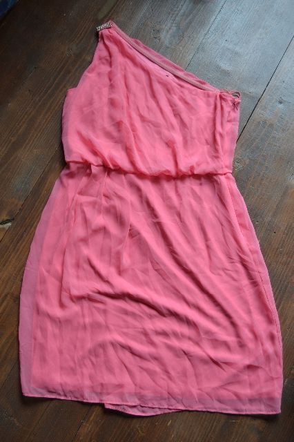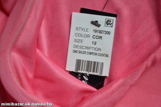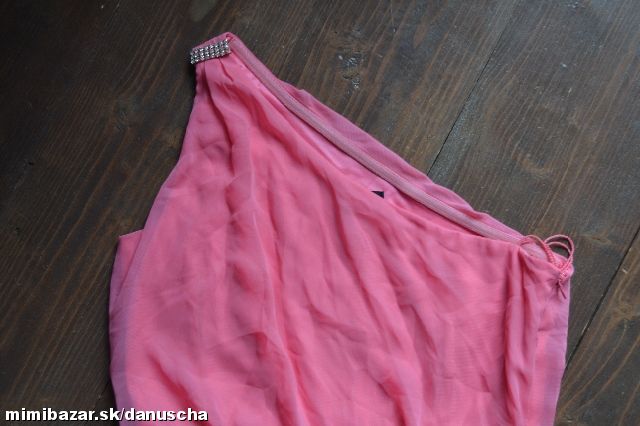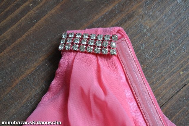 asymetrický strih s jedným širším ramienkom, ozdobené trblietavými kamienkami, zapínanie zipsom na boku, dvojvrstvové.