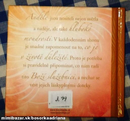Anjeli sú nositeľmi nielen svetla,ale tiež hlbokej múdrosti.V každodennom zhone je veľmi ľahké zabudnúť na to,čo je v živote dôležité.A tak sme občas bezradní v situáciách,ktoré so sebou život prináša.Či už ide o lásku,prácu,rodinný život,smerovanie....V tejto darčekovej knižke,ktorá nie je veľká rozmermi,ale hĺbkou myšlienok nájdeme láskyplné dotyky múdrosti najvyššej ...Ide o NOVÝ tovar,vhodný aj ako darček :-D