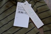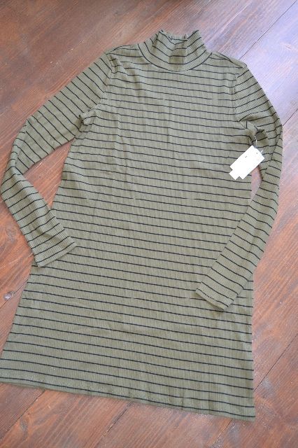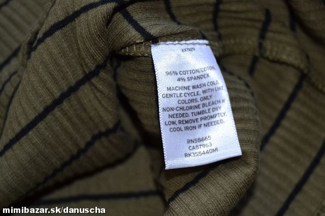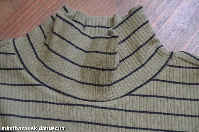 tenký úplet, stojačik, olivová zelená s tenkým čiernym pásikom.