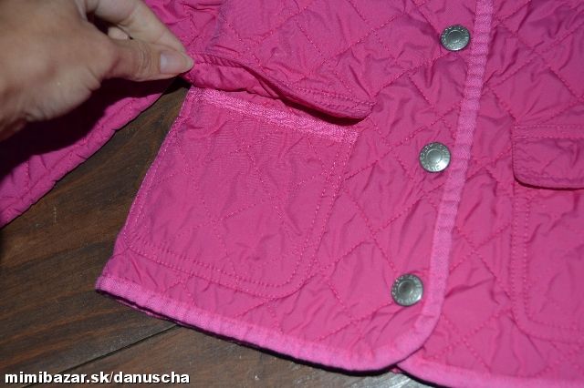 pekná ružová, zapínanie na cvoky, logo na hrudi, jemne zateplená, vpredu vrecká s patkami.