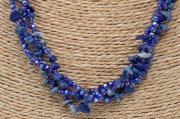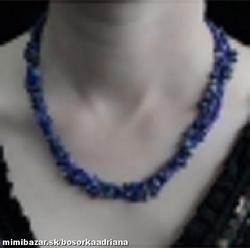 Lapis lazuli harmonizuje činnosť štítnej žľazy a posilňuje celú oblasť hrdla,imunitný systém v počiatočných štádiách rakoviny,pomáha aj pri ochoreniach kostnej drene.Zmierňuje úpaly,čistí krv,znižuje krvný tlak,zbavuje telo toxínov.Pomáha pri depresiách,bolestiach hlavy,menštruačných bolestiach,bolestiach končatín.Prospešný je pre pokožku a vlasy. Pomáha pri astme a posilňuje nervový systém,odstraňuje napätie,nepokoj,nespavosť, plachosť a pomáha aj pri autizme.Predchádza nervovým záchvatom kŕčom, závratom, epilepsii a porážke, je vhodný aj pri skleróze multiplex. Podporuje očistu DNA aj očistu lymfy.Chráni pred ekologickým smogom,napríklad pred žiarením z počítača.Náhrdelník z drobných leštených kamienkov nepravidelných tvarov navlečených na šnúre so zapínaním zo striebreného tombaku.Ide o NOVÝ tovar,vhodný aj ako darček.JEDINÝ kus v predajni!!!