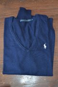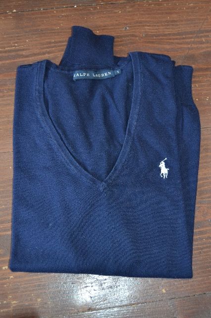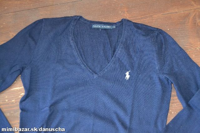 tmavomodrý dámsky sveter s V výstrihom RALPH LAUREN vo veľ. S.