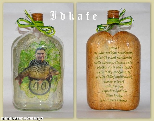 Fľašu odekorujem aj s vlastným motívom za príplatok za spracovanie motívu, cena podľa obtiažnosti, aj na iné príležitosti, plné i prázdne s možnosťou doplniť text...rôzne tvary a veľkosti fľaše