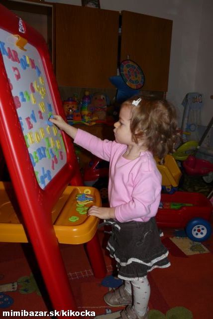 4 v 1: jedna strana je magnetická, dá sa na ňu písať fixkou, druhá klasická tabuľa na písanie kriedou a každá strana má úchytku na papier. Na spodu je priehradka na uloženie vecí. K tabuli mám aj magnetické penové písmená, čísila a rôzne znaky. Určené pre deti od 3 rokov. Výroba a dovoz USA. Rozmer kresliacej plochy: výška 47 cm, šírka 41 cm. Je super. Preferujem osobný odber (Bellova Ves - 30 km od BA, 20 km DS, 20 km Senec), ale môžem poslať aj kuriérom.