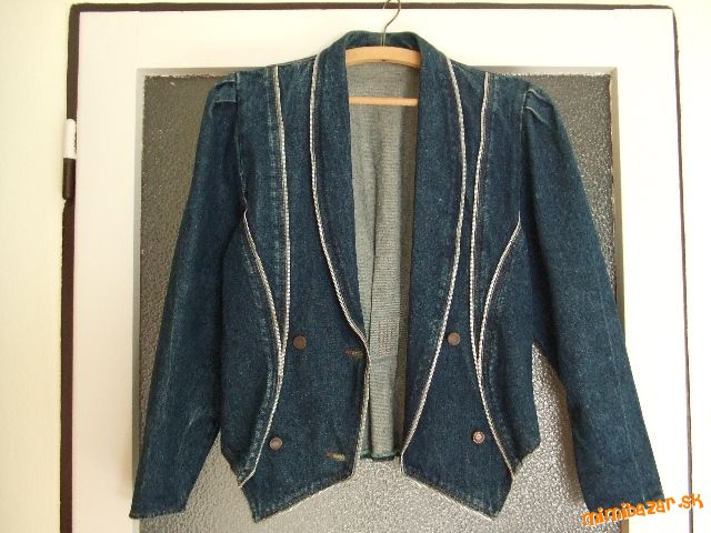 predám rifľovú bundu / sako v RETRO štýle s ozdobnými zipsami, cca 80-te roky, je nosené, ale bezchybná a parádna :)