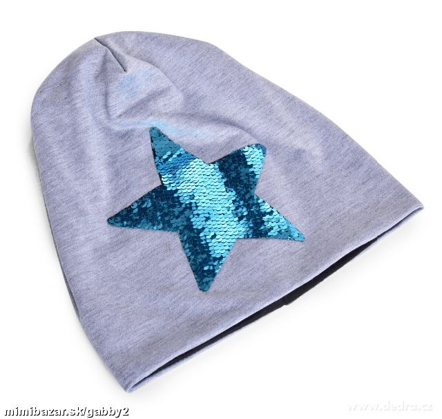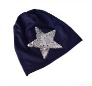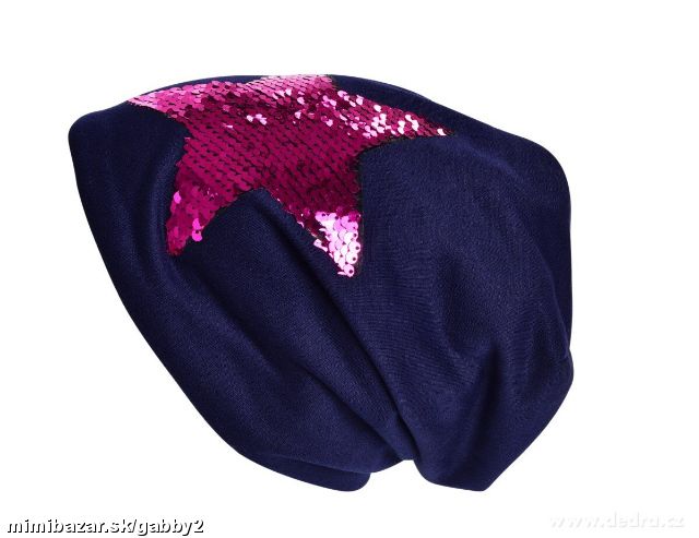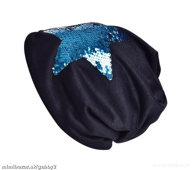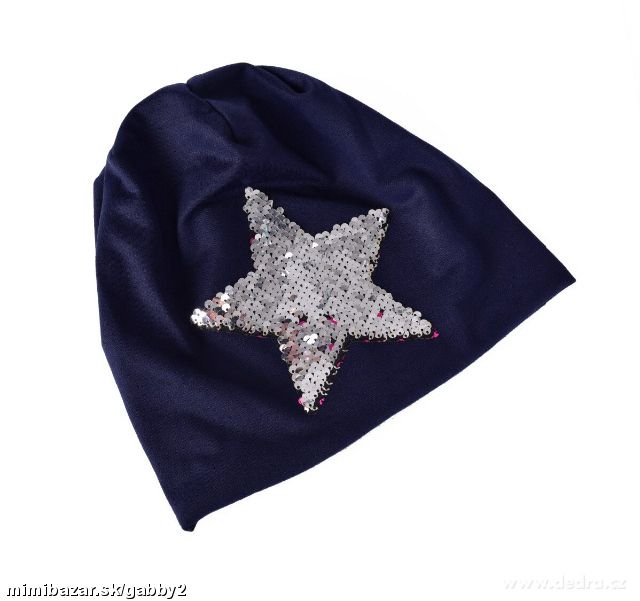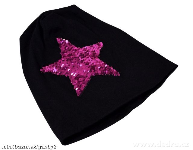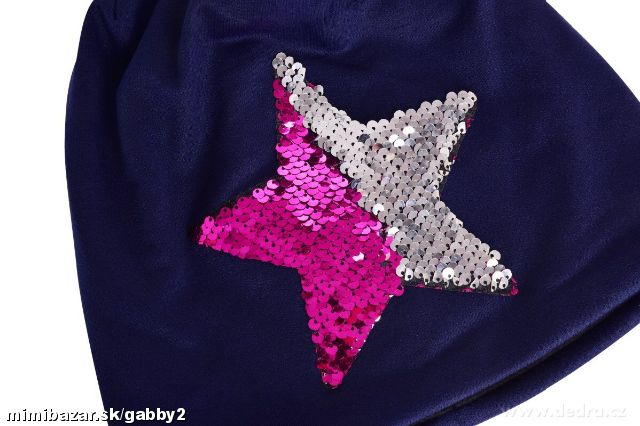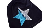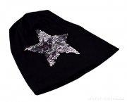 STAR 2v1 pohodlná čepice s aplikací hvězdy z lesklých oboustranných třpytek. 100% PES. Lehce pružný materiál.
