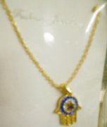 Jediný a jedinečný šperk z chirurgickej ocele: na retiazke zlatej farbe je prívesok ochrannej Fatiminej ručičke HAMSA.Tento set je určený pre všetkých,čo potrebujú aktívnu ochranu pred urieknutím,kliatbou,závisťou či nenávisťou,skrátka ako sa hovorí u nás,proti "zočine". Ide o NOVÝ tovar v jedinom kuse,takže nositeľ bude vlastniť ORIGINÁL ... Dodávaný v darčekovom vrecúšku.