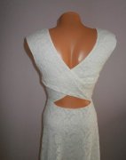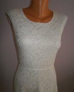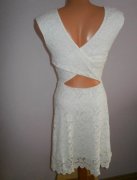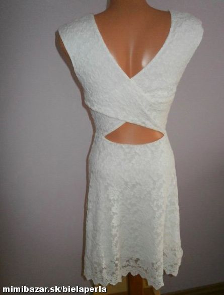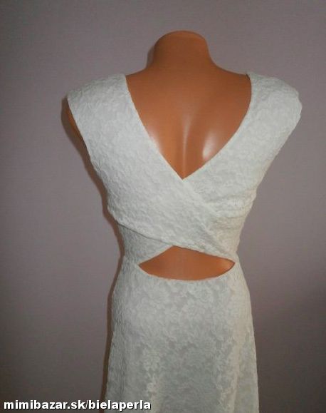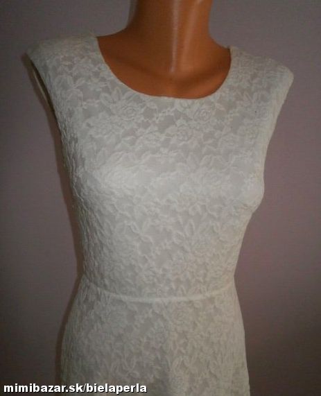 predám krásné šaty ,kvalitná biela čipka, podšité úpletom, v páse strihané s áčkovou sukničkou, na chrbáte prekrížené. bez známok nosenia, podľa mier cca XS