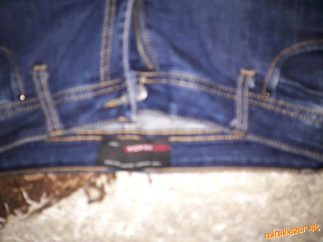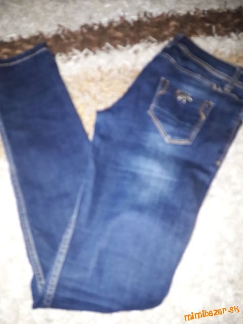 džínsy Trendy vreckový štýl s piatimi vreckami, zapínaným pásom a skrytým zipsom. logo na zadnom vrecku a na gombíkoch. Dĺžka 104 cm . Elastická riflová kvalita