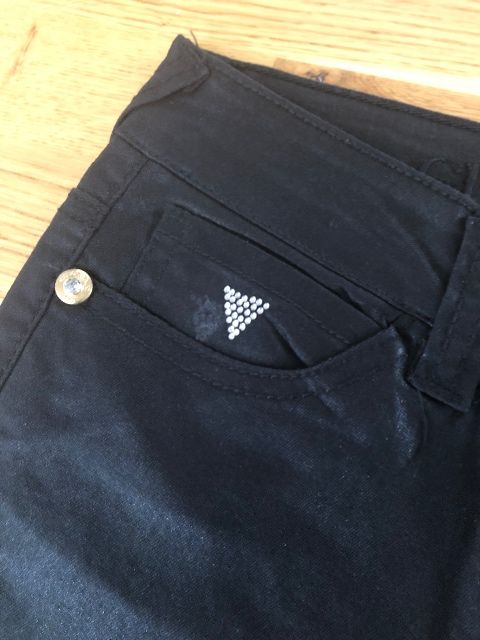 skinny úzky strih, sú jemne elastické, trblietavé, na pohľad akoby kožené!