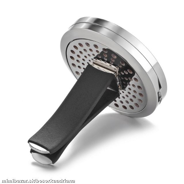 Unikátny difuzér,ktorý vám umožní mať vašu obľúbenú vôňu alebo parfum po celý čas v aute.Jednoducho aplikujete vôňu na plstený krúžok a vložíte do difuzéra.Výborný doplnok do vášho auta,krásny dizajn a funkčnosť.Výborný pre použitie ak nechcete používať chemické osviežovače.Môžete použiť rôzne vône,parfumy,éterické oleje(silice), produkty pomandrov a kvintensencií a pod.Difuzér sa dodáva s desiatimi farebnými poduškami(plstenými krúžkami),ktoré sa dajú samostatne dokúpiť.Difuzér sa inštaluje jednoducho na výduch ventilátora pomocou štipca.Materiál difuzéra je nerezová oceľ.Priemer 30mm, hrúbka 5mm.Ide o NOVÝ tovar,vhodný aj ako darček.JEDINÝ KUS tohoto modelu v predajni!