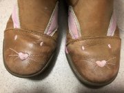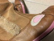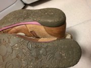 len pár krát obuté, treba zatrieť špičky, koža je jemne ošúchaná, nie zodretá... fotím nezatreté, na fotkách to je horšie ako v skutočnosti...