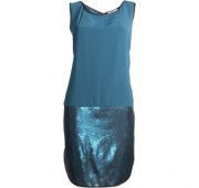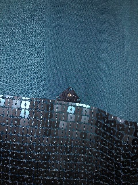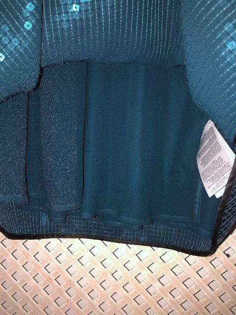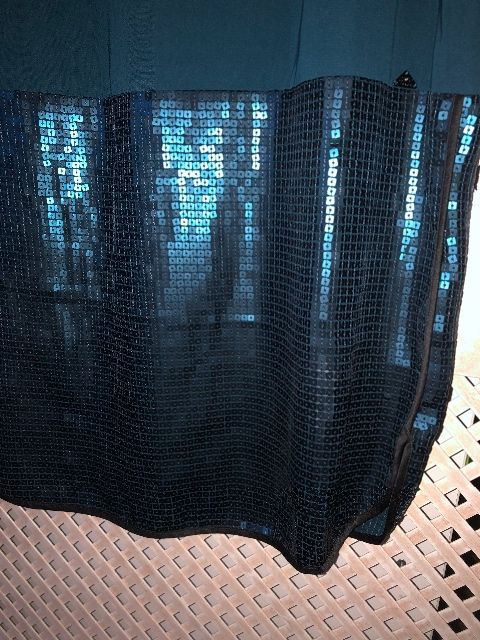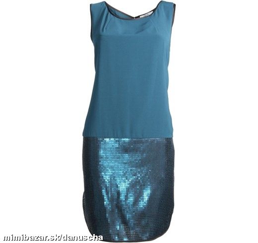 zeleno-modrá / petrolejová farba, ľahučké padavé, sukňa pošitá flitrami v rovnakej farbe...