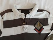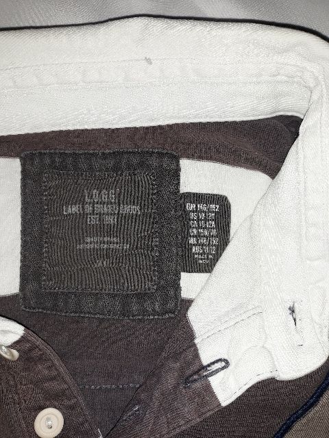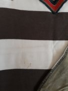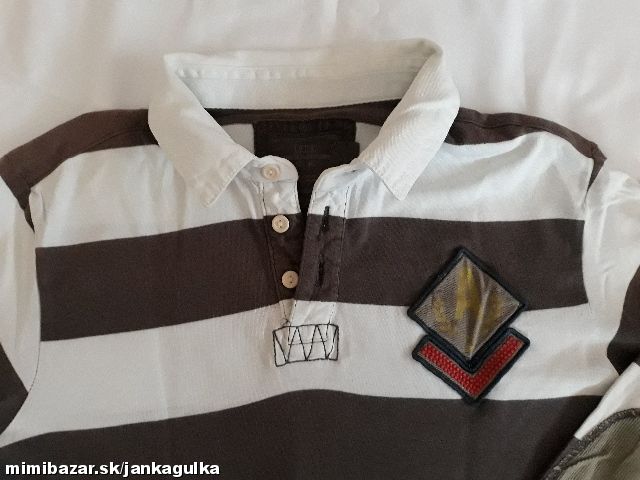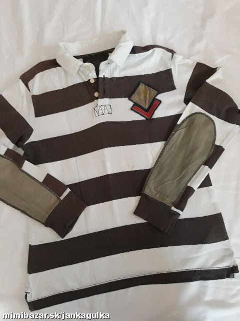 Prúžkované tričko s golierikom. Nosené, má fliačik - nič strašné, odfotené. Inač v dobrom stave.