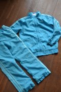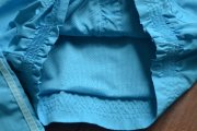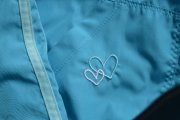 kultová modrá, ktorú adidas roky používa, svetlejšie pásiky, lemovaná malinkými volánikmi z rovnakého materiálu, vyšité srdiečka, všade kopa zámykov, úžasné dievčenské detaily! tenká, proti vetru, podšitá sieťovanou látkou, nosili sme na legíny atď.