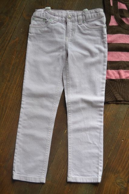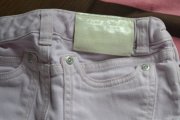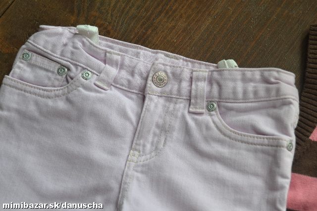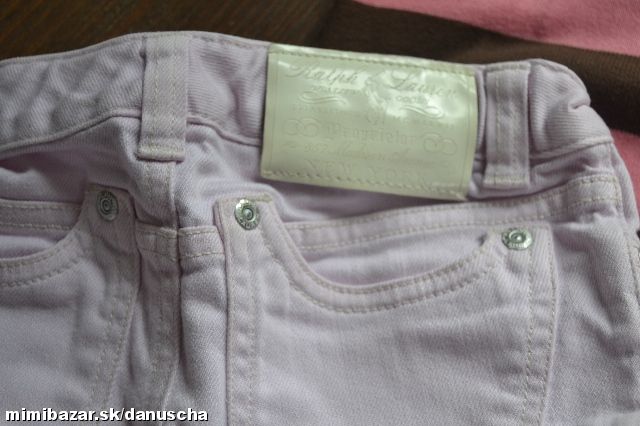ružovo-fialkové rifle RALPH LAUREN vo veľ. 5 / 110. úzky strih, regulovateľný pás, vzadu kožená etiketa s logom. malinká dierka na páse