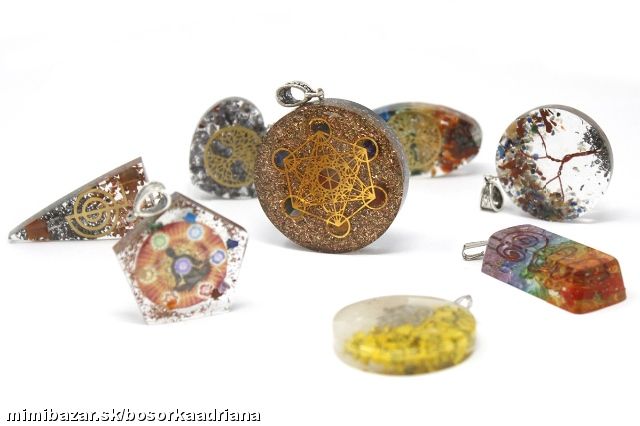 Viac magickejšie alebo ezoterickejšie predmety ako tieto orgonitové prívesky nenájdete.Sú známe tiež ako objekty usmerňujúce tok energie.Orgonitové prívesky sú vyrobené z kúskov drahokamov,medi,úlomkov rôznych kovov a zaliatych ezoterických objektov.Orgonit sa stal veľmi populárny ako nástroj spirituálneho liečenia a ochrana pred elektromagnetickým znečistením. Veľa ľudí pri používaní týchto objektov cíti pozitívne emócie a zlepšenie nálady. Niektorý tiež hovoria o lepšom a zdravšom spánku,keď majú tieto objekty v spálni.Prívesky sú vyrábané so spirituálnou inšpirácou takže sa design môže mierne líšiť od jednotlivých kusov,každý je ORIGINÁL! Dodávané v darčekovom vrecúšku :-D
