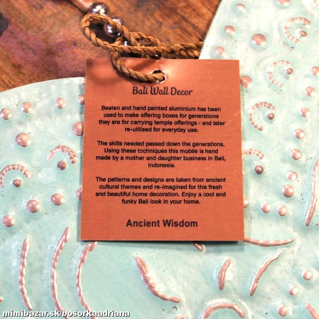 Dekorácia z Bali - Anjel v moderných pastelových farbách a tvaroch dodajú každému domovu čaro ostrova Bali. Ručne spracovaný a ručne maľovaný hliník sa po generácie používa na výrobu obetných misiek pre chrámy. Rovnaká technika sa používa aj na výrobu týchto dekorácií. Designy sú doplnené korálkami a strapcami, ktoré vytvárajú krásnu dekoráciu. Ide o prvé naskladnenie s uvádzacou cenou,ktorá je cca o 1/3nižšia,než bežná cena...Keďže ide o NOVÝ tovar,môžete ho použiť ako darček po celý rok,nielen na Vianoce :-D