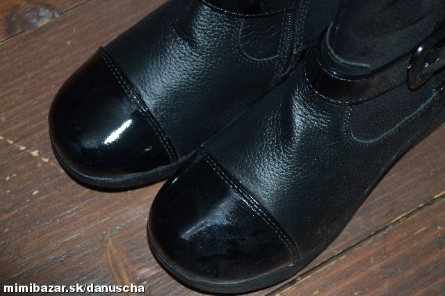 čierna farba, lakovaná špica, zips na vnútornej strane, všitá elastická časť, pracka na ozdobu...