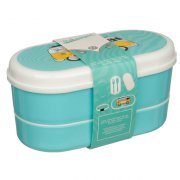Šikovný japonský obedár bledomodrej farby s WV autobusom ako obrázkom.S týmto pekným boxom si môžete svoj obed ľahko vziať so sebou do školy, do práce atď.Japonský obedár obsahuje 2 obedové boxy s pekným obrazom Volkswagenu.Skladá z 2 priehradiek so zodpovedajúcou lyžičkou a vidličkou. Rozdeľovač je nastaviteľný a zatvára sa gumičkou.Bez BPA, vhodný do umývačky riadu (max. 40 stupňov, ručné veko), nevhodný do mikrovlnnej rúry.